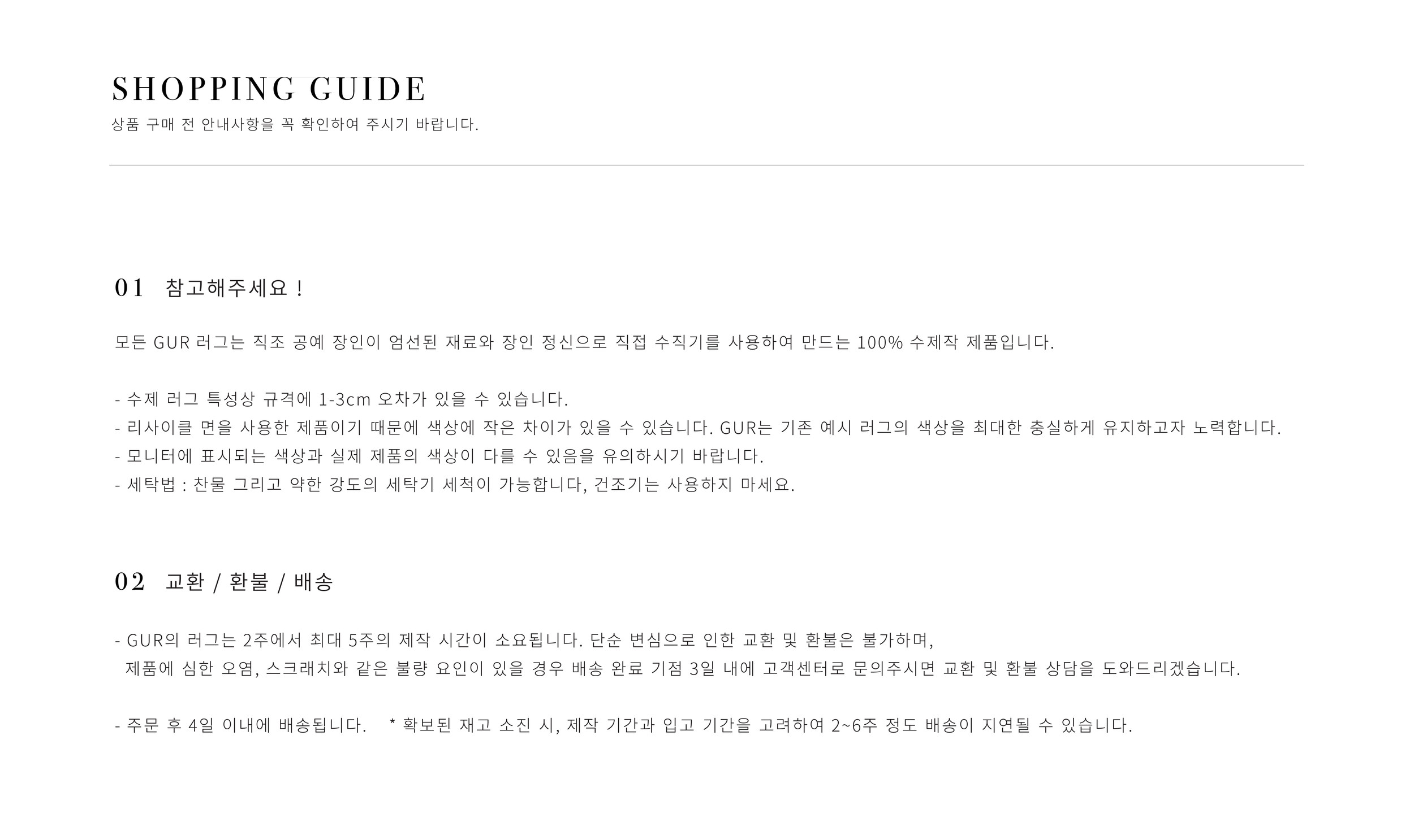 *** 모든 GUR 러그는 직조 공예 장인이 엄선된 재료와 장인정신으로 직접 수직기를 사용하여 만드는 100% 수제작 제품입니다.